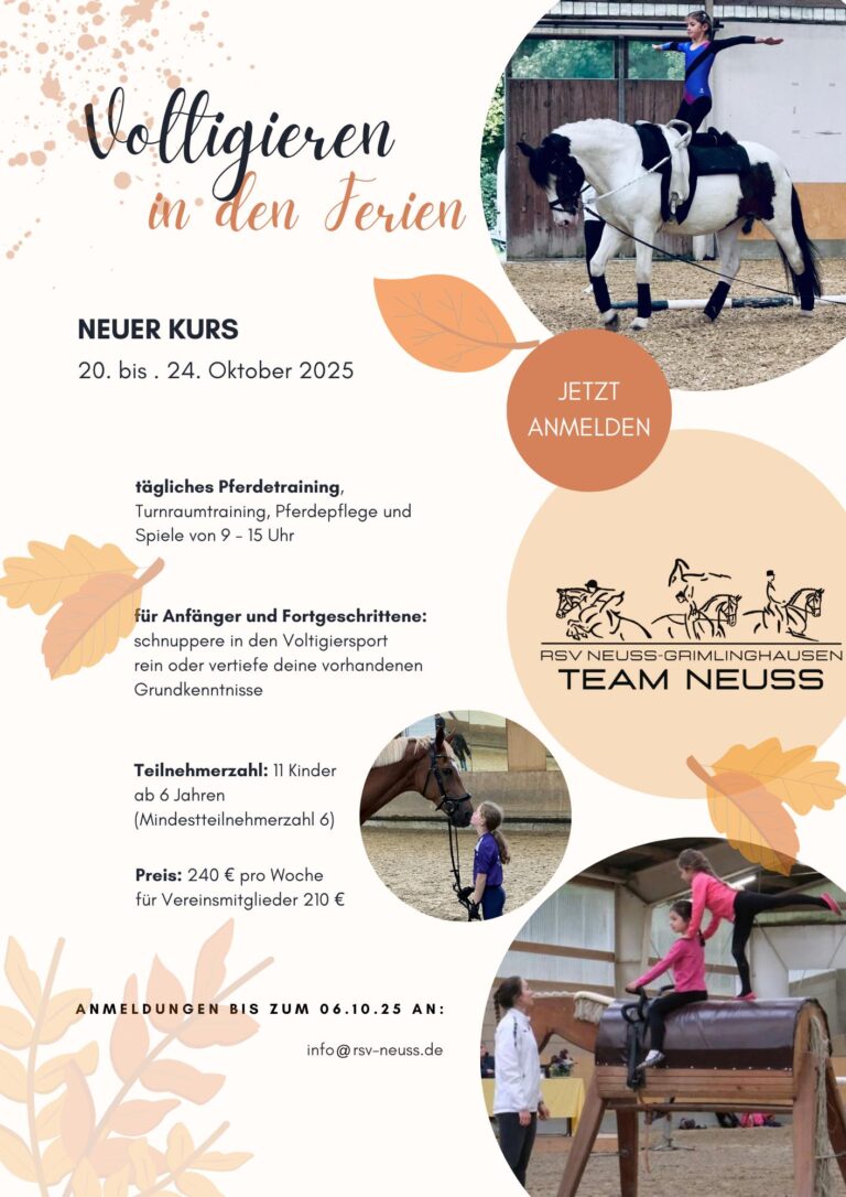 Hier findet ihr unsere aktuellen Aktionen und Kurse. Es ist wieder soweit, in den Herbstferien findet wieder unser beliebter Ferienkurs statt! Meldet Euch gerne bei weiteren Fragen.